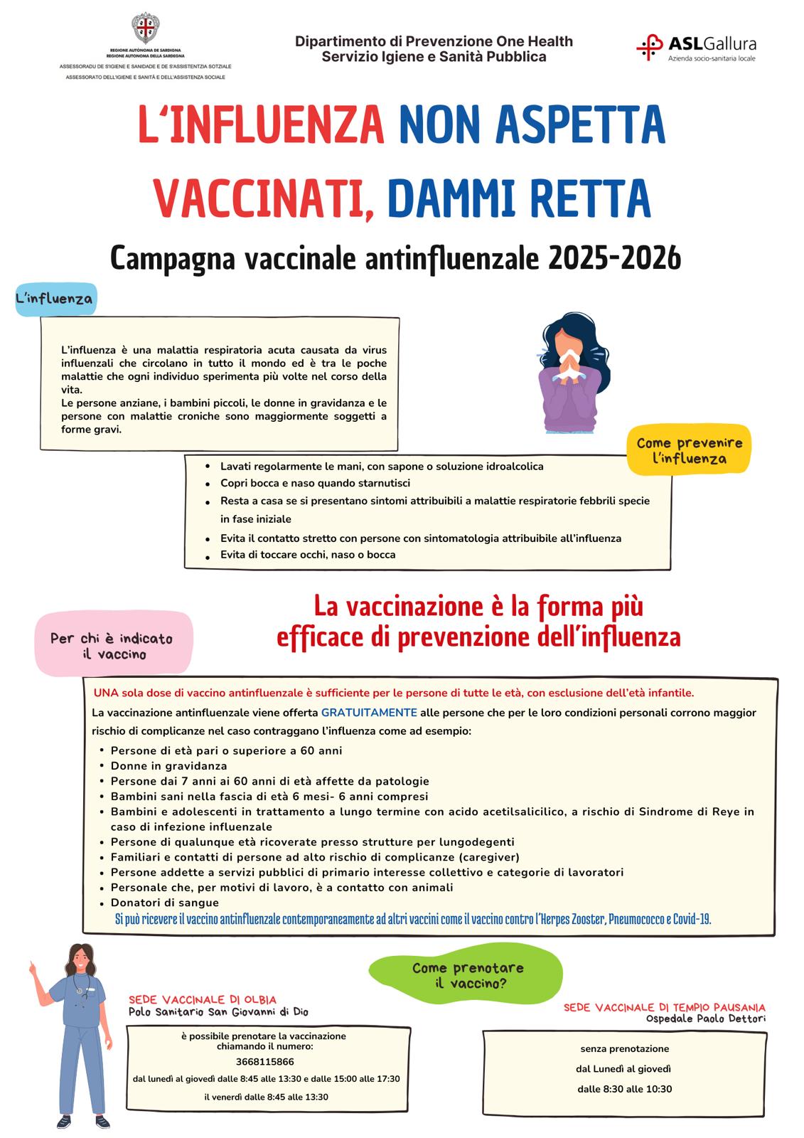 Olbia, 23 ottobre 2025 – In Gallura si apre lunedì 27 ottobre la campagna di vaccinazione antinfluenzale e anti Covid-19. Le vaccinazioni saranno offerte dal Servizio Igiene e Sanità Pubblica del Dipartimento di Prevenzione Area Medica della Asl Gallura nei Centri Vaccinali di Olbia e Tempio Pausania.