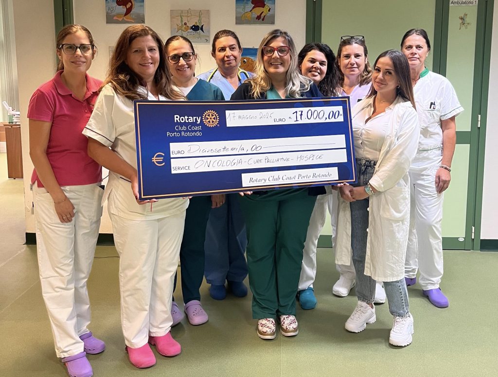 «A nome di tutti gli operatori sanitari dell’unità di Oncologia Medica, cure palliative e Hospice ringrazio sentitamente il Rotary Club Coast di Porto Rotondo – sottolinea il Direttore della S.C. di Oncologia Medica, Dott. Natale Tedde – perchè con questa importante donazione ci dà la possibilità di proseguire nel percorso di umanizzazione con progetti dedicati ai pazienti e alle loro famiglie, incentrati sulla cultura, sulla condivisione e sulla creazione di spazi più accoglienti. La donazione verrà gestita tramite la nostra Associazione di Oncologia Paolo Secchi-Non mollare mai, che ci consentirà di dare continuità alle attività che mettono il paziente al centro del percorso assistenziale».